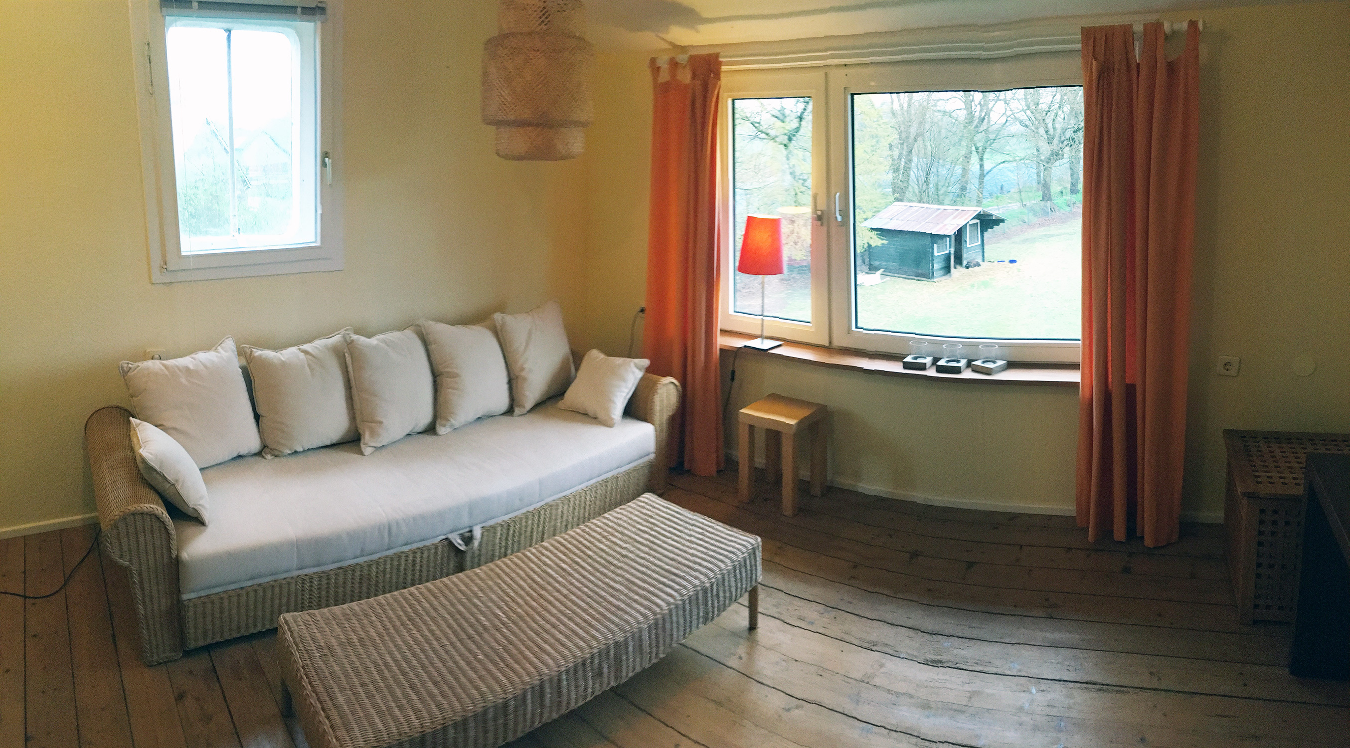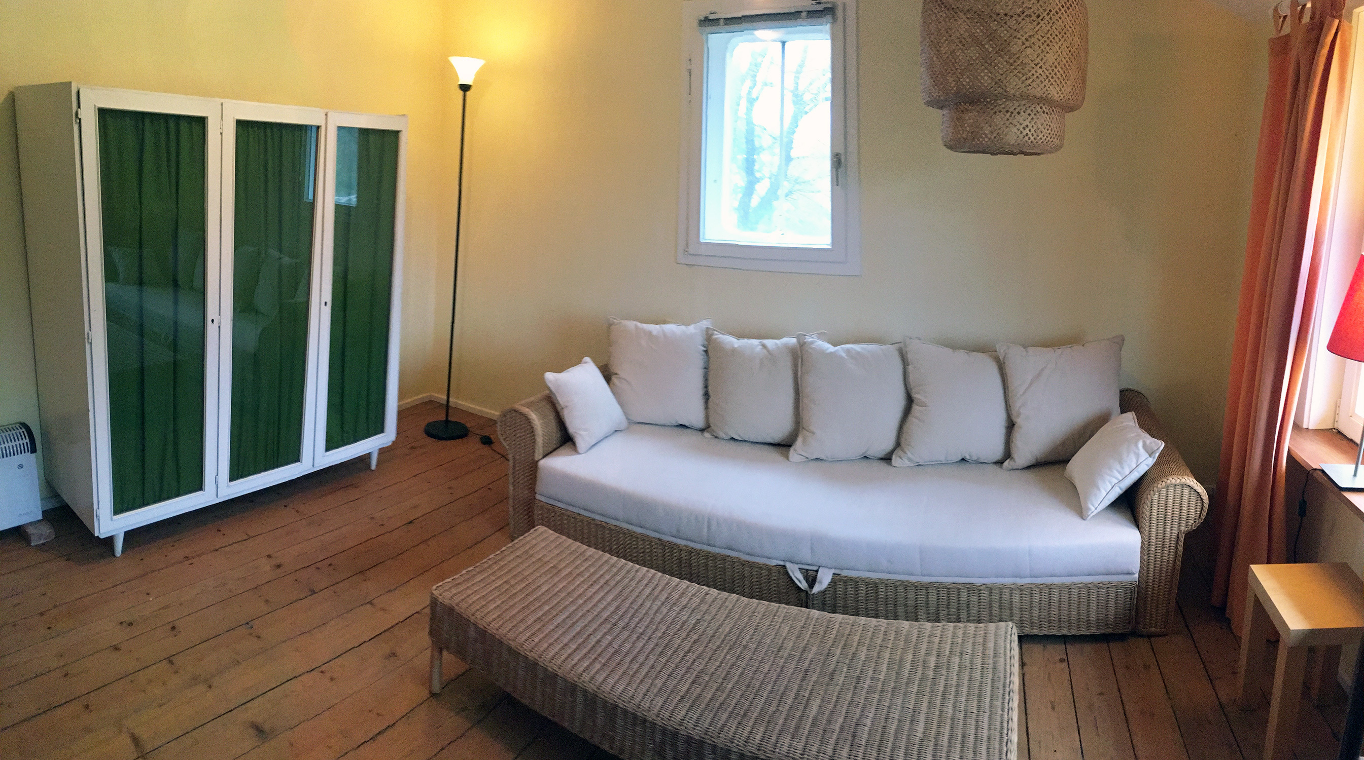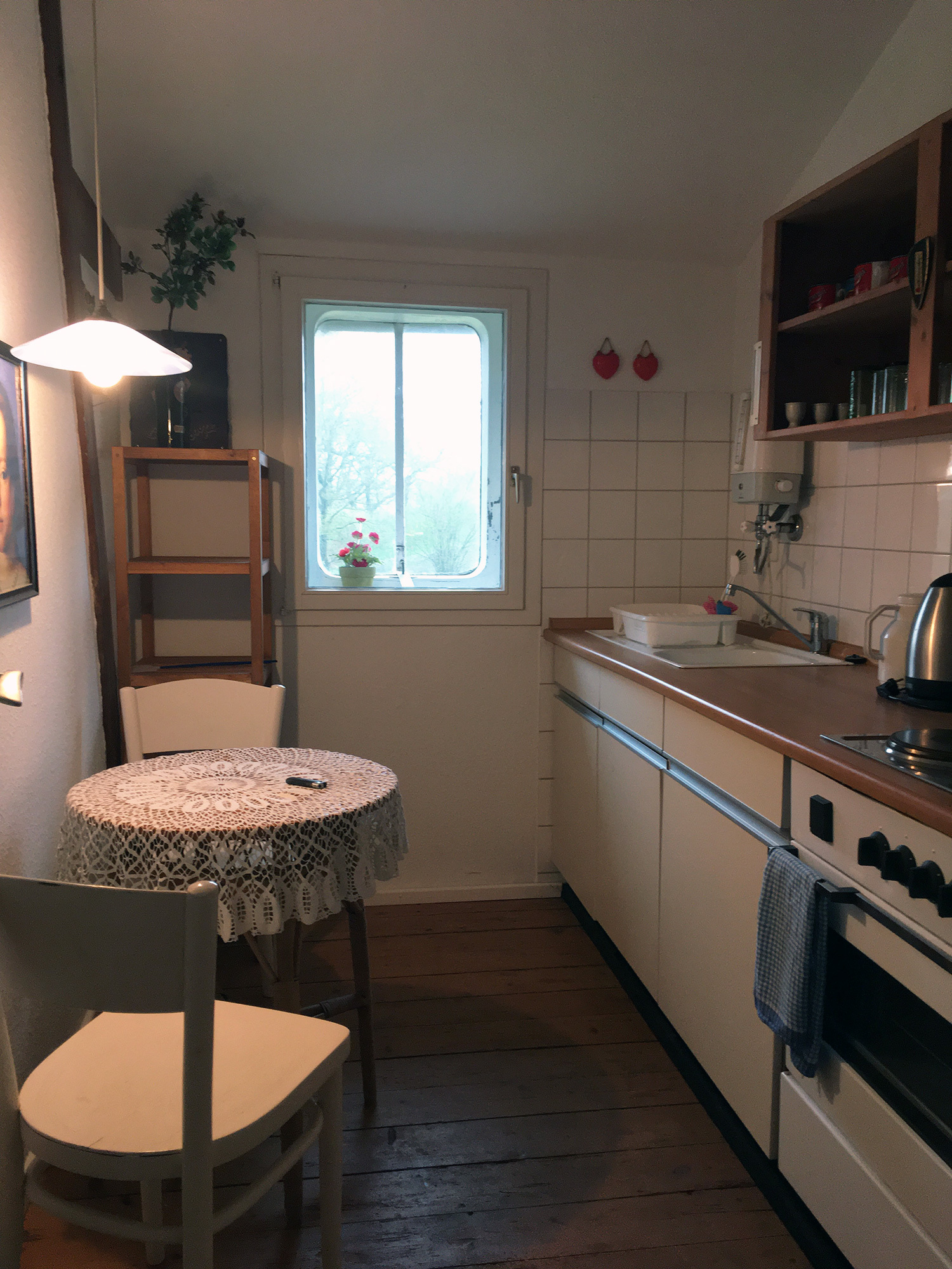 Sie ist ca. 35 m2 groß und hat eine separate kleine Küche und Duschbad.